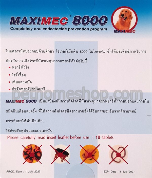 Maximec 8000 ตัวยา Ivermectin 8000 ไมโครกรัม (1 กล่อง บรรจุ 10 เม็ด)